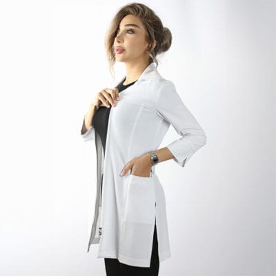 EMILY SLIM LONG LAB COAT, FULL ZIPPER